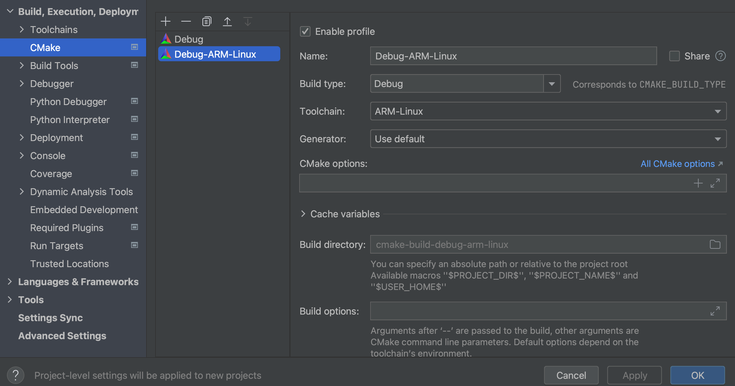 根据需要选择配置的ToolChain,我优先使用的是ARM-Linux