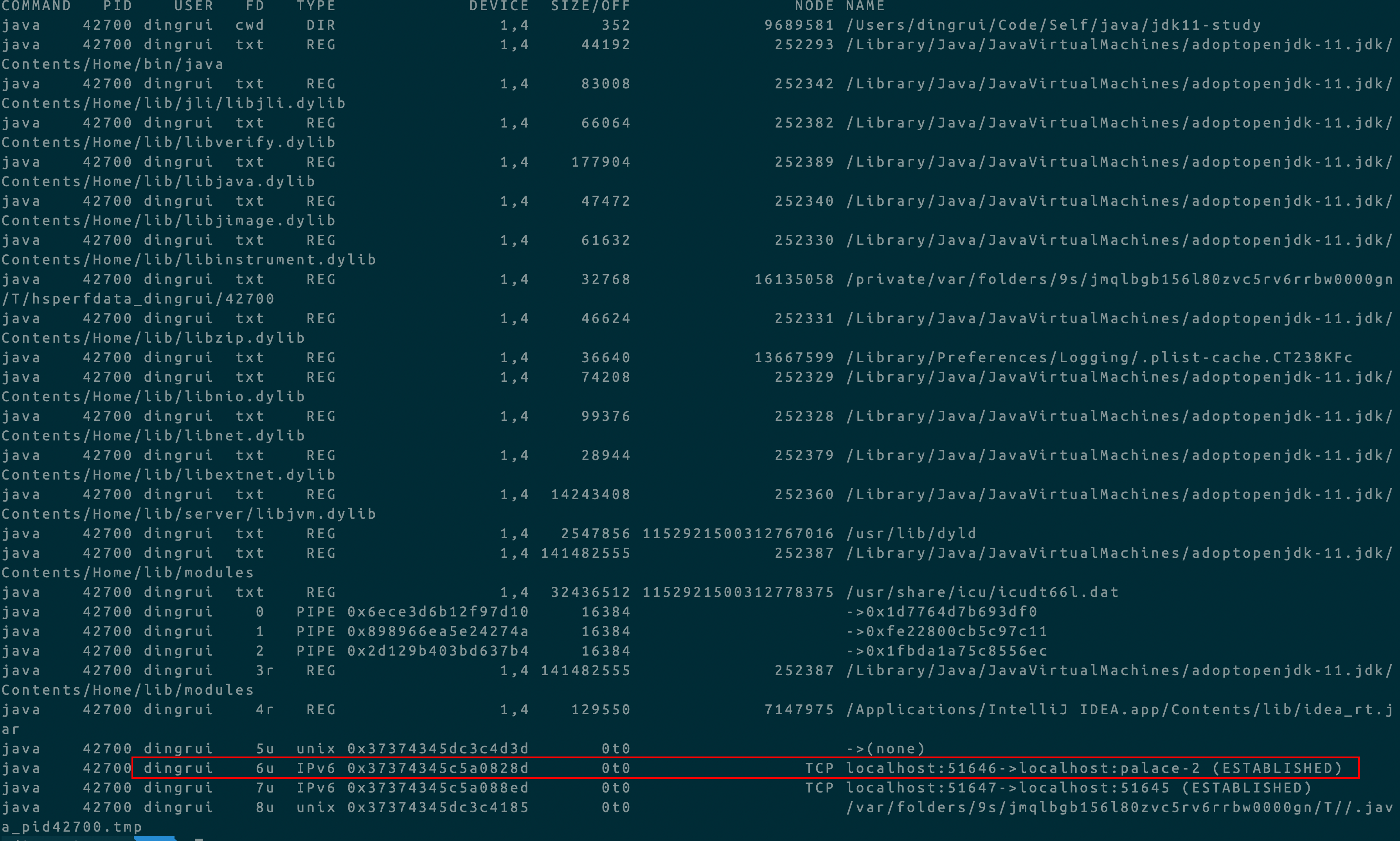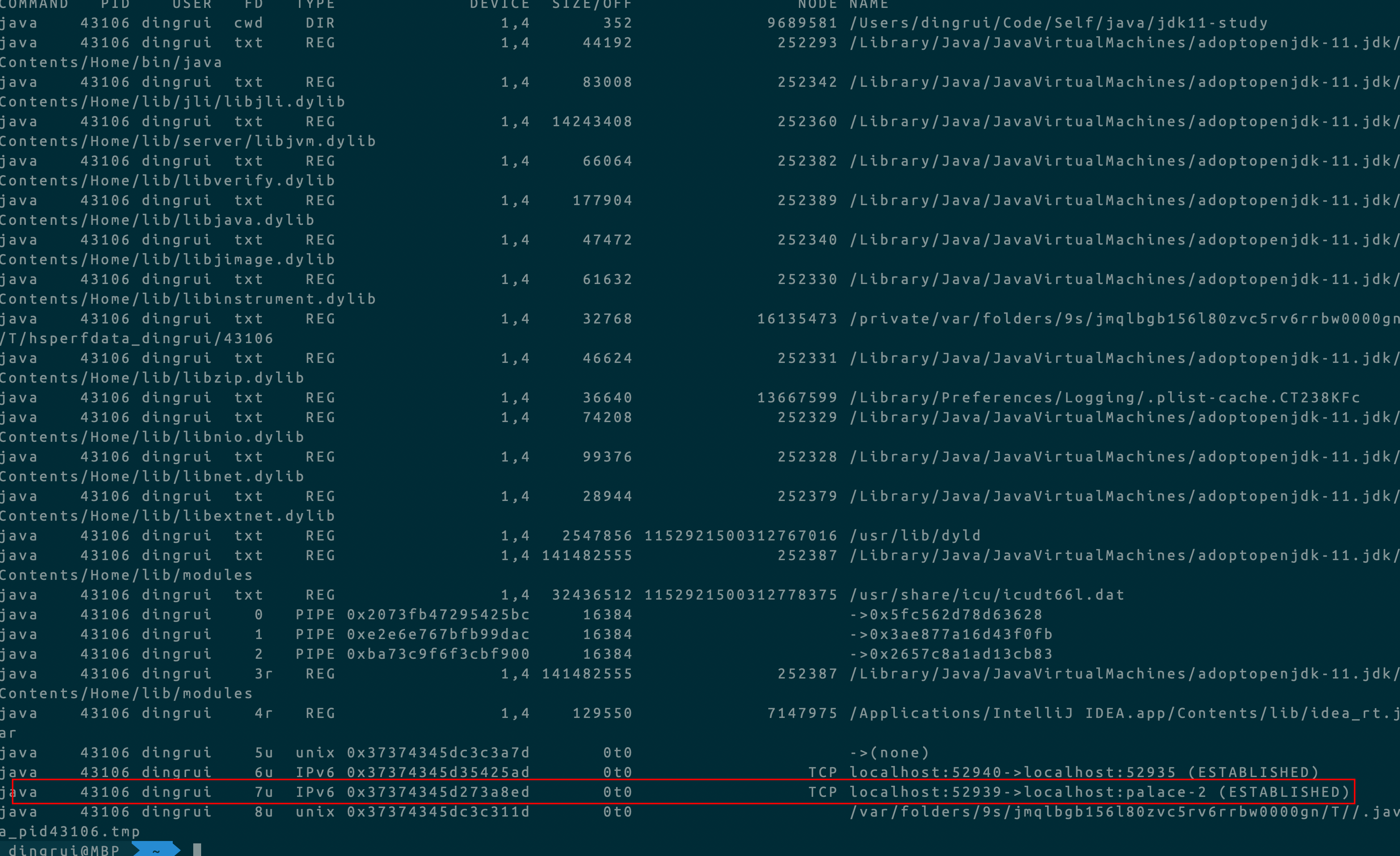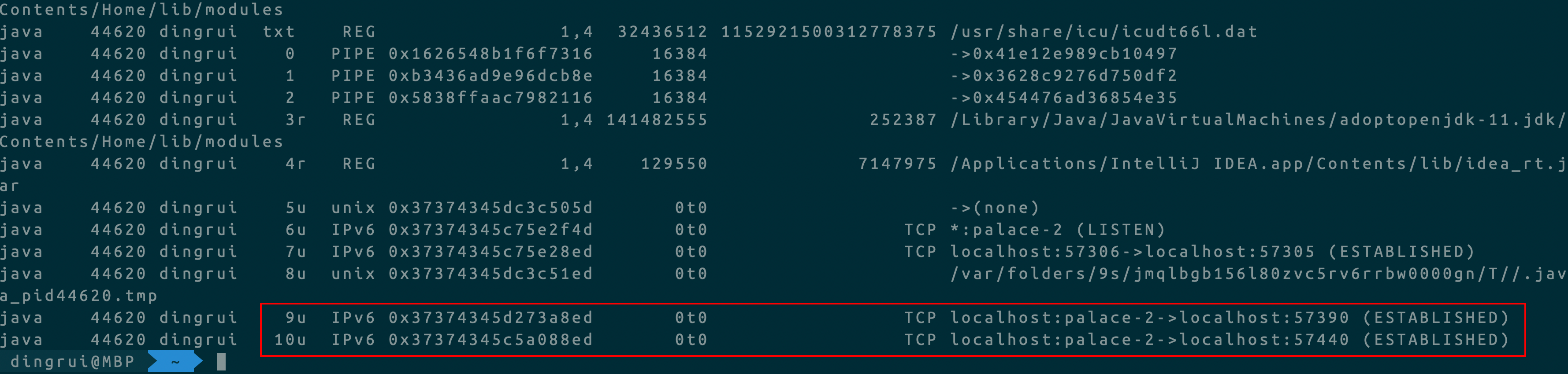 - 客户端侧可以看到一条跟服务端的tcp连接,本机:51466->本机:9993