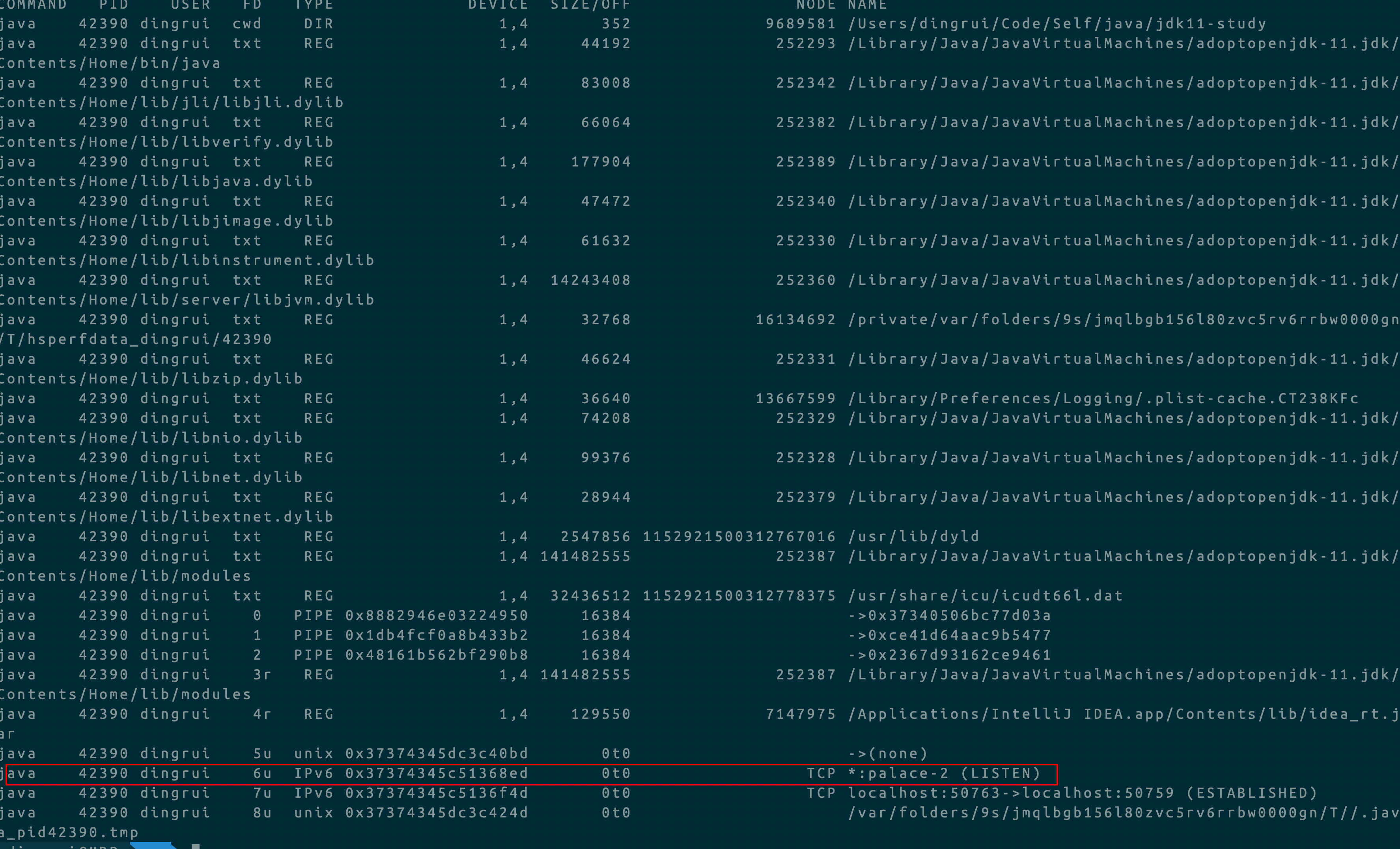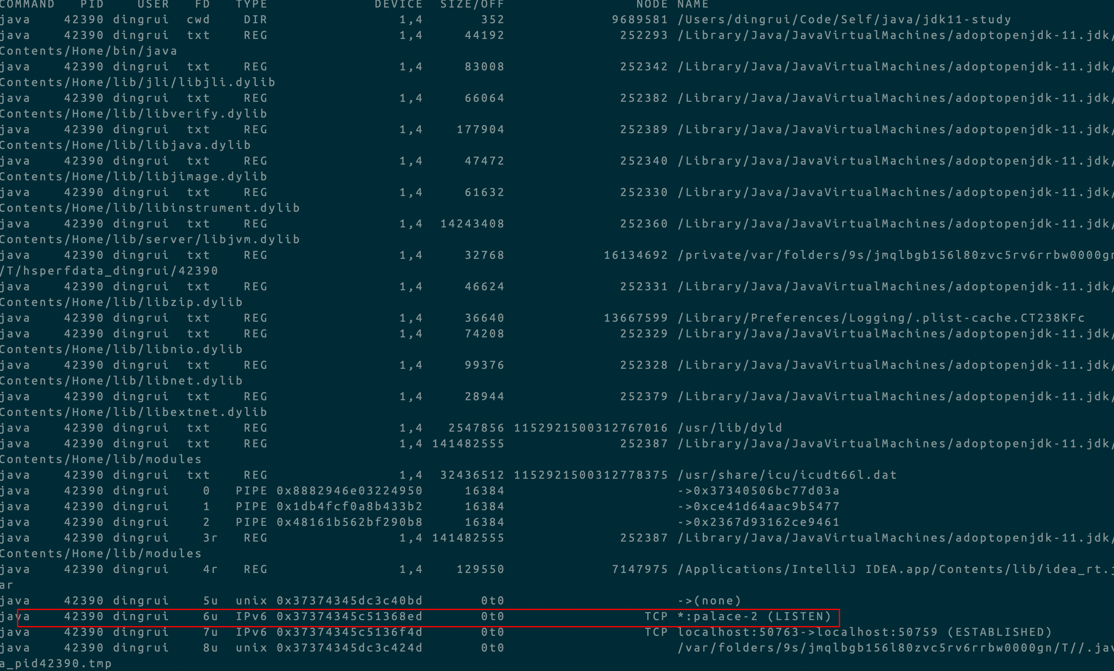 我们将代码阻塞在创建ServerSocket之后,也就是说在程序层面上仅仅做了一件事情,我们观察现象去推导内核做了什么事情