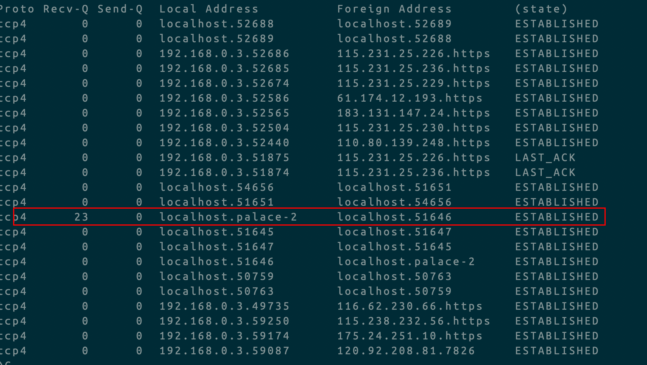 - 服务端侧依然只能看到服务端程序在监听着端口,看不到服务端跟某个客户端已经建立了tcp连接
