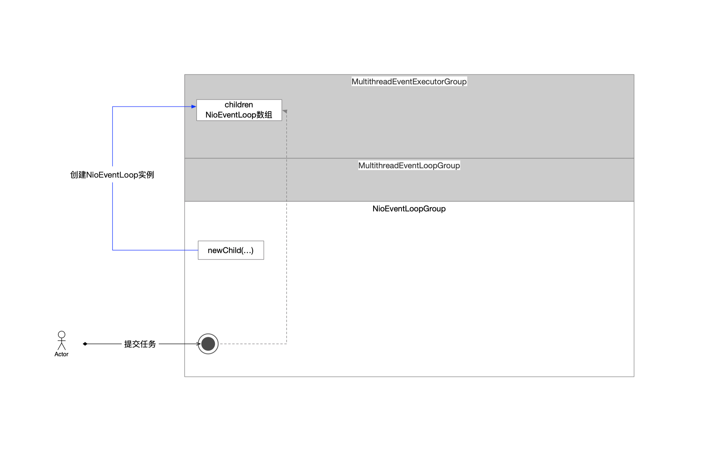 NioEventLoopGroup组件只开放了跟客户端交互的窗口,只负责传达提交任务的指令,后续跟任务生命周期相关的流程已经跟NioEventLoopGroup没有关系了,都是由NioEventLoop组件负责,即