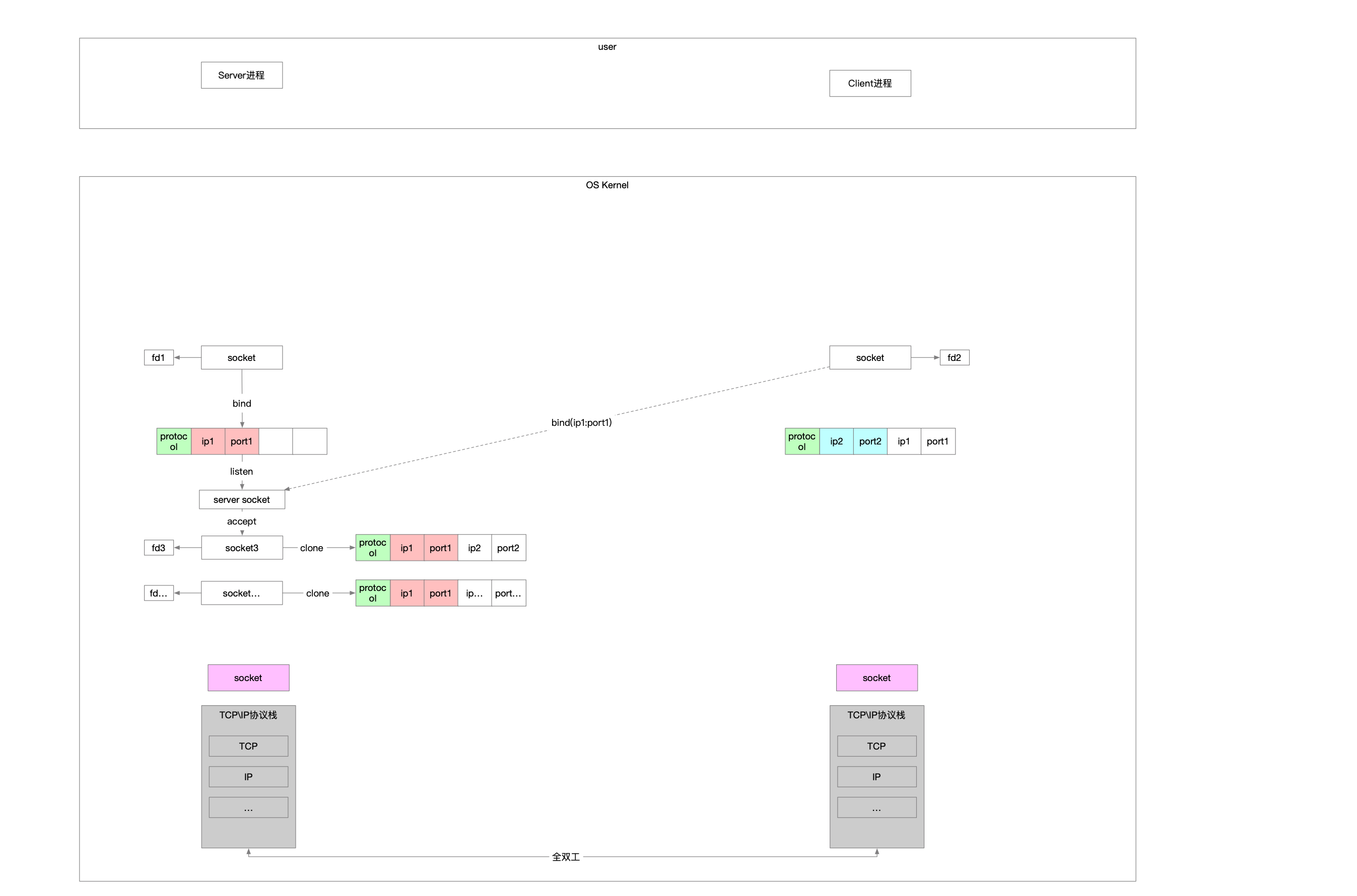 socket是负责端到端,两个进程间的通信,因此它一定是成对的