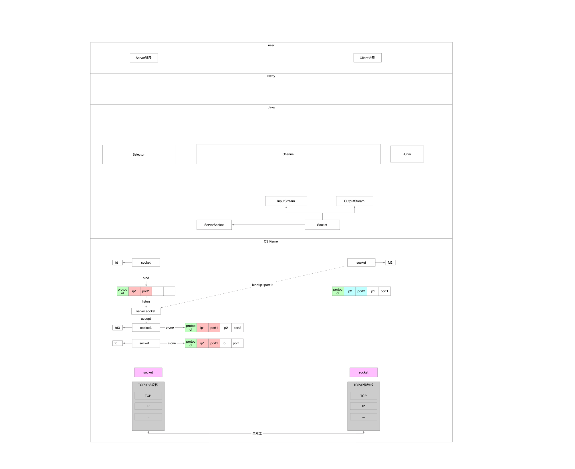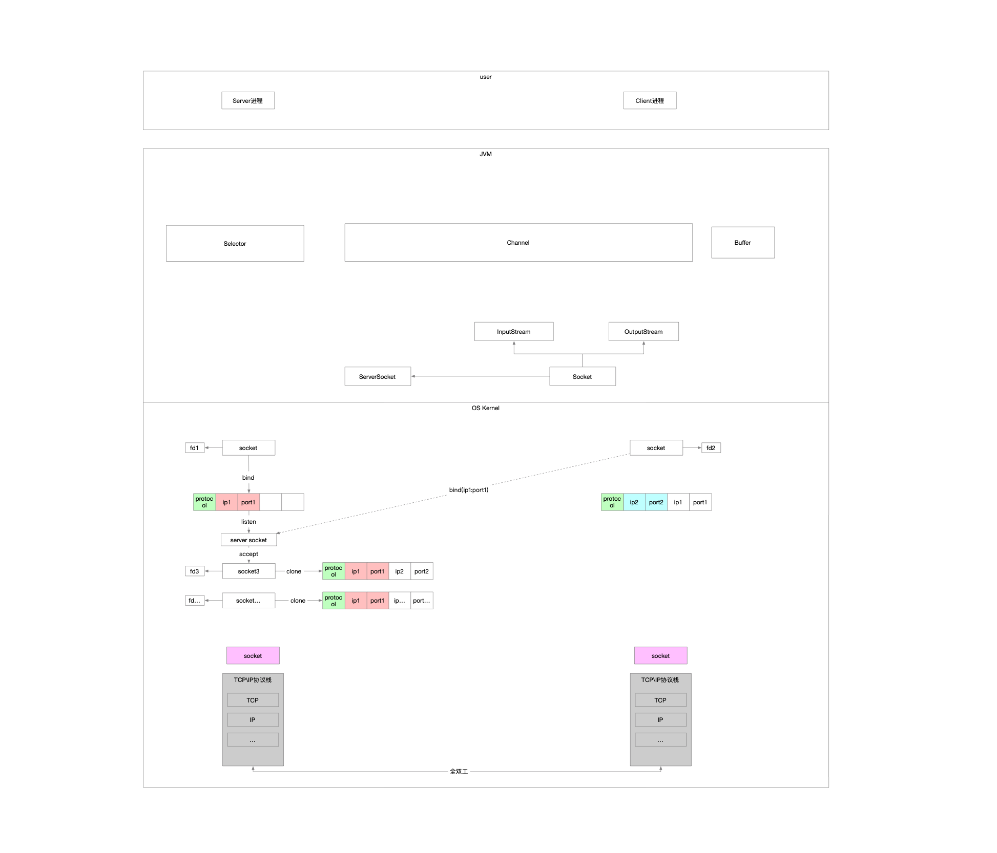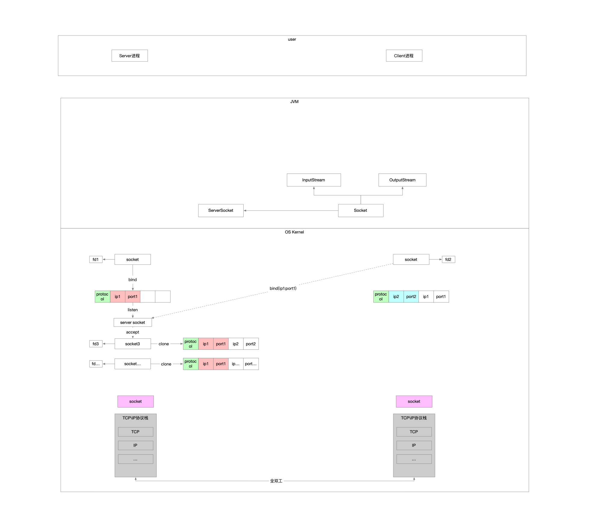 为了区分专门负责连接的被动Socket,在此基础上封装出来了Socket和ServerSocket,将绑定端口这个系统调用封装到了ServerSocket的构造方法中
