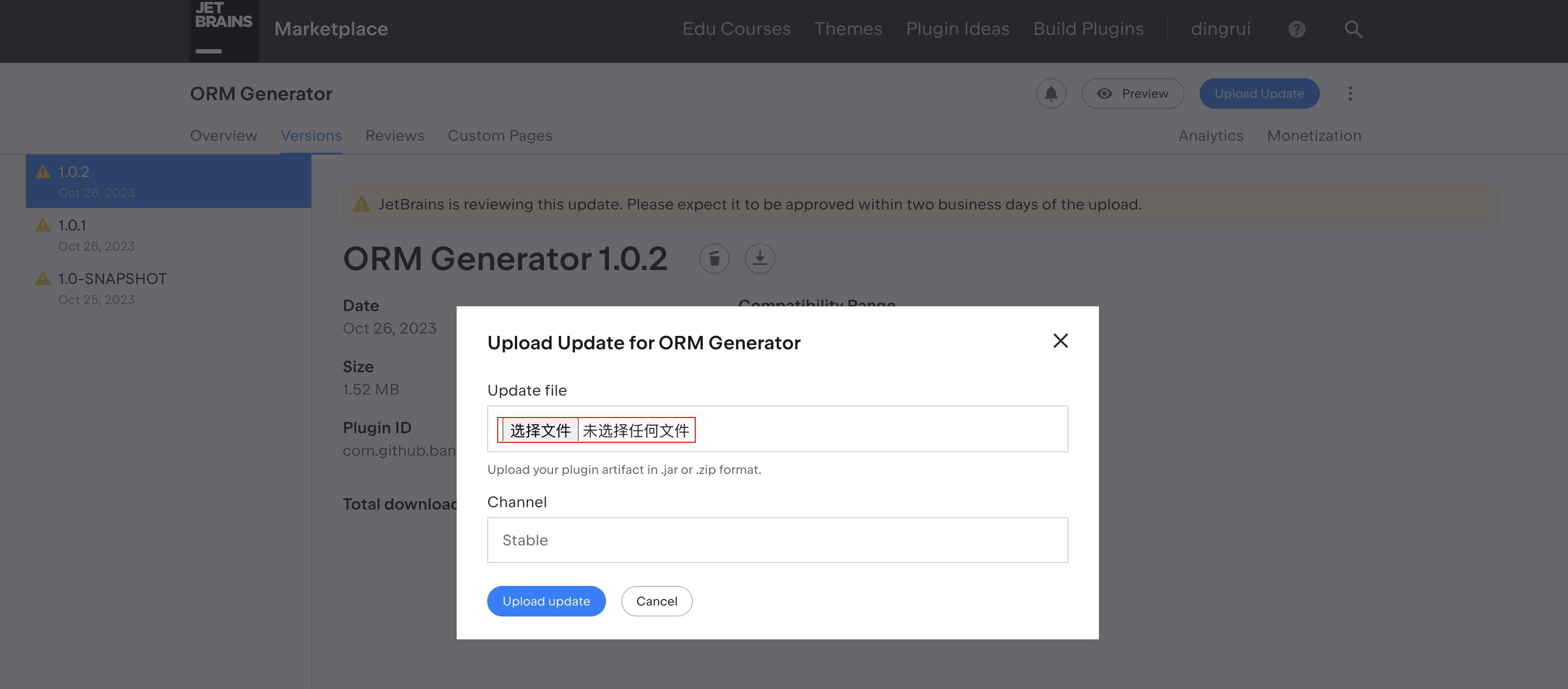 build.gradle.kts和plugin.xml文件,迭代升级对应的版本(marketplace校验同channel中文件版本不能重复)