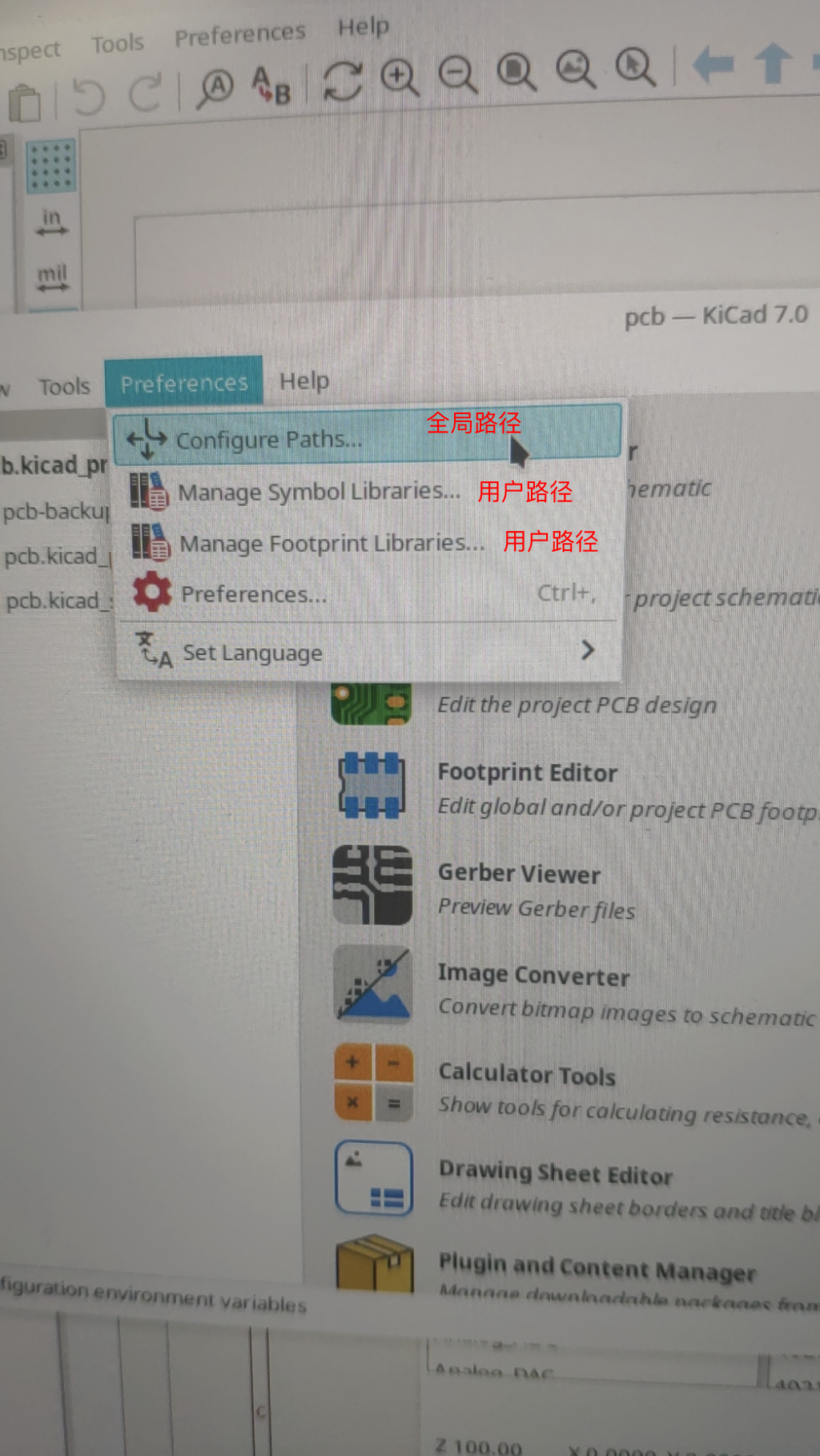 /usr/share/kicad里面的路径 - 而库管理器默认扫描的是用户的,即