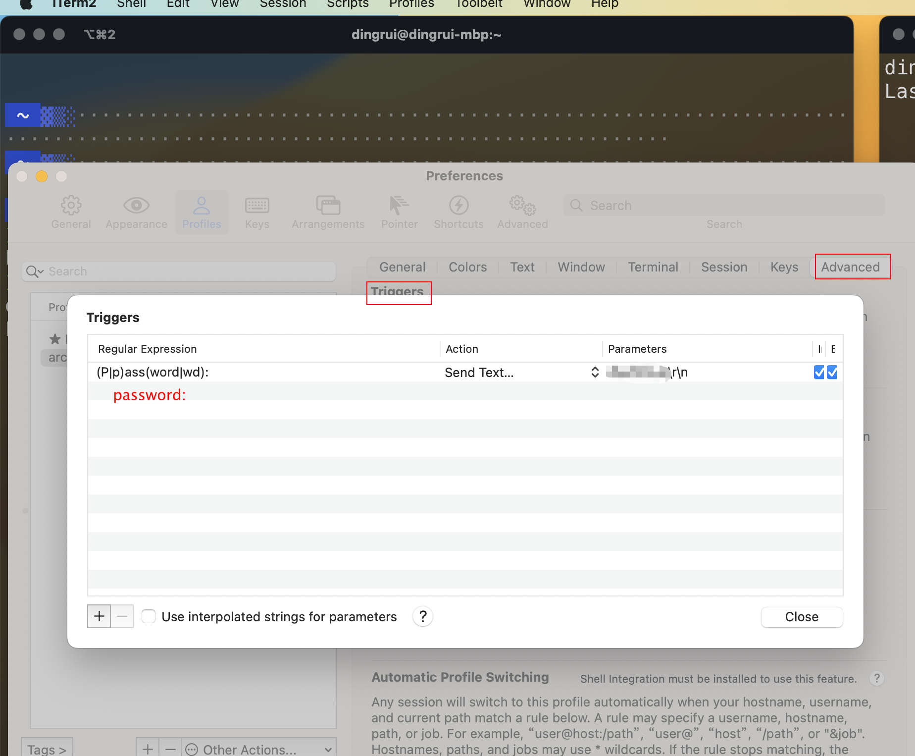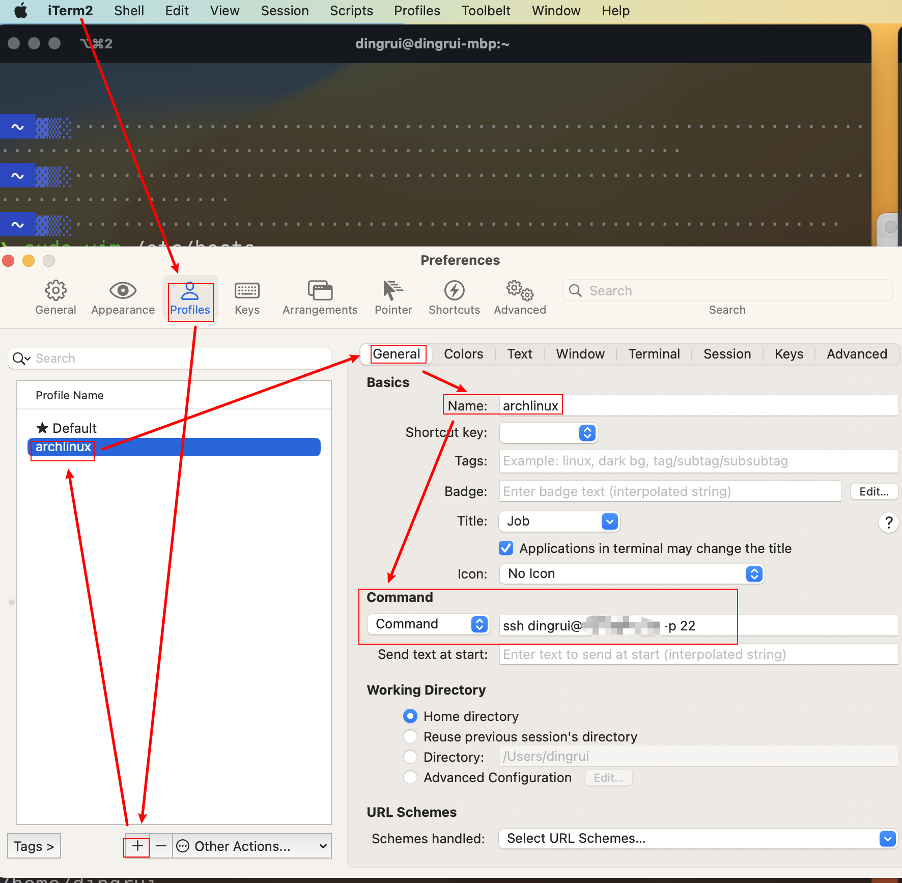 上面的ssh命令连接方式很不友好,因此用iterm2终端配置