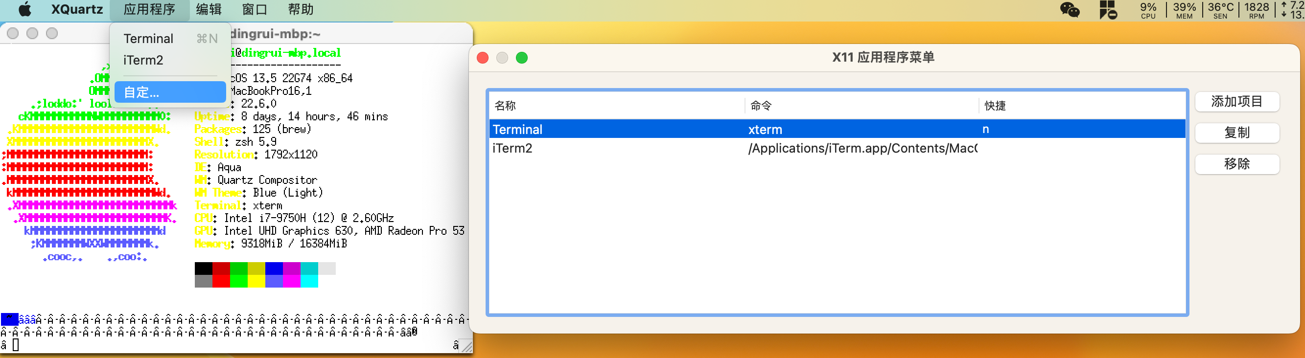 在iterm2中运行的程序需要gui支持会自动转发x11给xquartz,唤起xquartz,然后显示出来