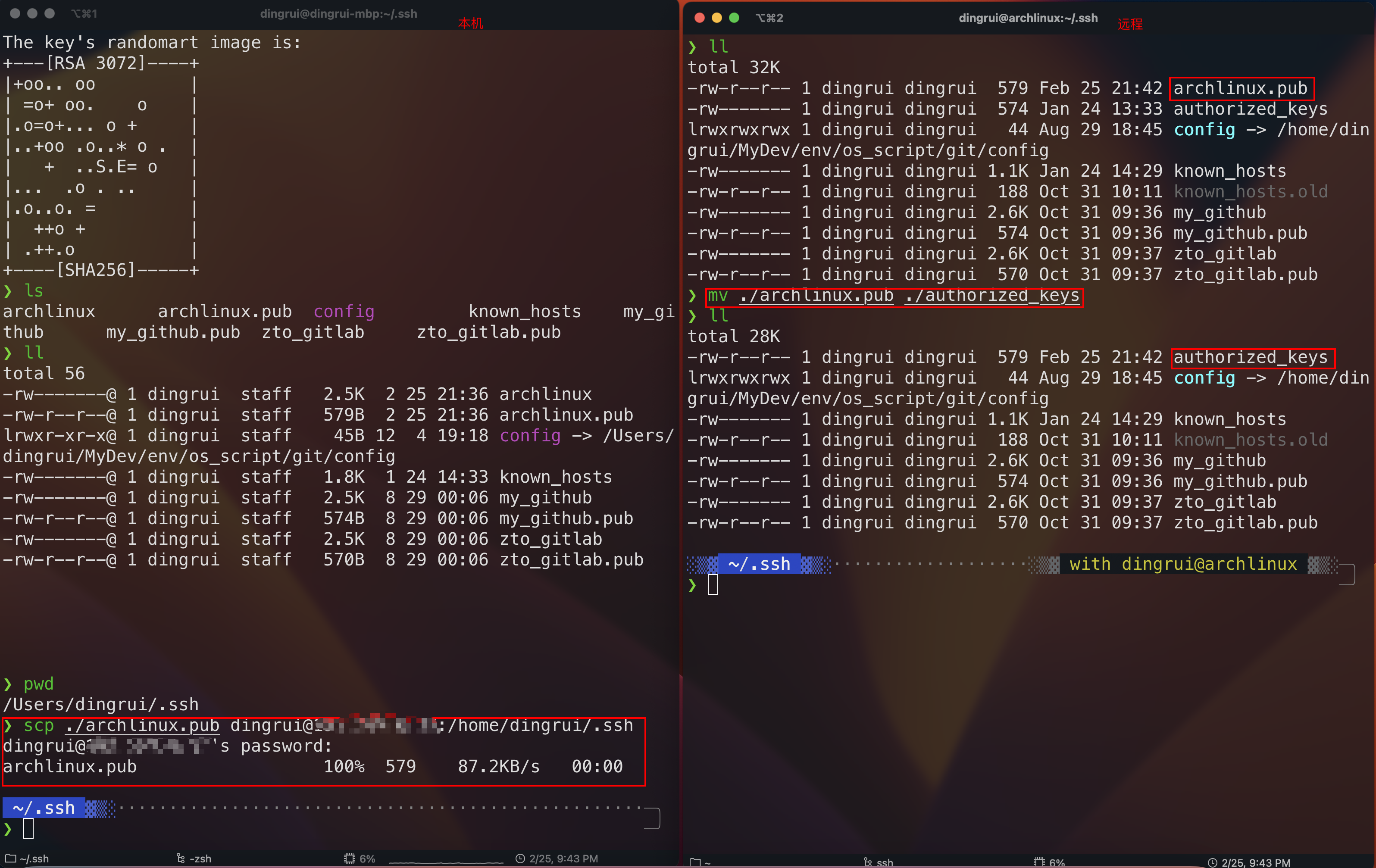 但是现在每次的连接和远程的访问都要手动输入密码,配置一下ssh免密登陆即可一劳永逸。