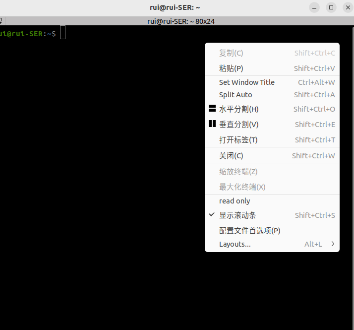 3.3.2 设置为默认终端 1 2 gsettings set org.gnome.desktop.default-applications.terminal exec /usr/bin/terminator gsettings set org.gnome.desktop.default-applications.terminal exec-arg "-x"