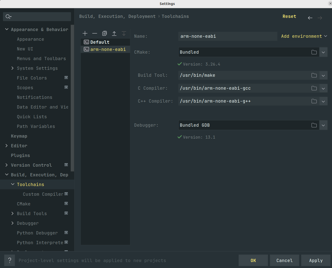 3.11 Clion配置 1 2 3 whereis make whereis arm-none-eabi-gcc whereis arm-none-eabi-g++