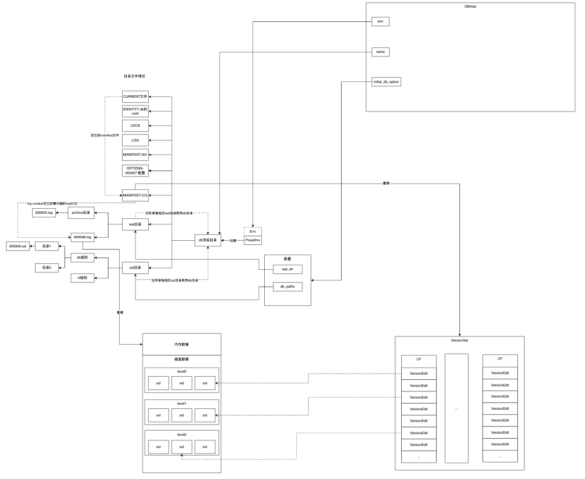 关于磁盘里面的数据,RocksDB在内存中新建了一个数据结构VersionSet里面维护了每个列簇的Version情况,所谓的Version就是每个SST文件的情况包括SST