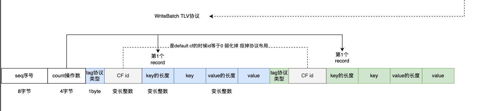 - 不是默认cf tag+cf的id+key的length+key+value的length+value